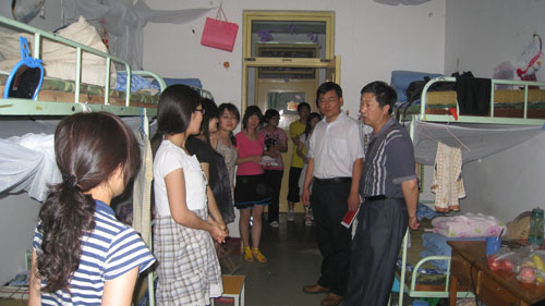 学院领导先后走访了我院3号、4号公寓楼的部分毕业生男女宿舍,与毕业生进行了面对面、心贴心的交流。走访过程中,院领导认真了解了毕业生目前的工作签订、考研学习的状况,段书记还仔细询问了毕业生的宿舍生活情况,同时刘书记强调毕业生党员要发挥模范作用,认真做好毕业生宿舍卫生工作。同学们认真回答了院领导的问题并表示非常感谢领导的关心慰问,最后宿舍走访在轻松愉快的氛围中结束。