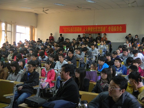 在报告会上,关玛莉会长首先指出了高校和高校中的青年学子在社会主义现代化建设中所起的重要作用,她说高校是培养社会主义现代化建设者和社会主义事业合格接班人的良好平台,是为国家培育优秀人才的重要阵地,高校青年学子的自身素质如何是关系到国家将来发展、增强国家核心竞争力的重要因素,胡锦涛总书记在“七一”讲话中对青年学生提出了要求,并且寄予了很高的希望,因此提高青年学子的自身素质,大力弘扬志愿服务精神具有十分重要的意义。