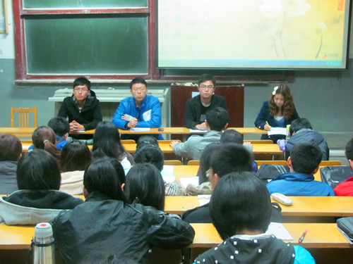 会议伊始,宁远先向大家简单介绍了学生会的性质和宗旨,说明此次会议召开目的是了解开学两个多月以来各班学生的学习、生活情况,以便于学生会及时向院领导反映问题和进一步开展各项工作。接着,宁远就自习室的安排问题向大家做出说明,并表示将尽快与院领导沟通协调以满足大家学习需求。然后,分管纪检中心的副主席孟庆磊就最近的考勤问题向大家进行详细解释。他表明纪检中心考勤工作是紧紧围绕学院最近出台关于加强学风建设的政策展开的,有利于督促学生养成良好的学习习惯。他着重强调了班长和团支书在班级学风建设中的引航作用,要求各班班长和团支书端正态度,理解并积极协助学生会开展考勤工作,同时主动与本班学生沟通,传达学生会的工作要求和目的。之后,部分班长和团支书向学生会反映了东校区取款不便、宿舍环境不佳、晚自习请假制度不明确等问题,并提出了建议。学生会都一一进行了记录和解答。最后,路皎向大家具体介绍了学生会的新鲜讯息,包括开学两个月以来取得的重大成绩和下一步的活动安排,有利于大家积极参与各项活动,丰富校园文化。