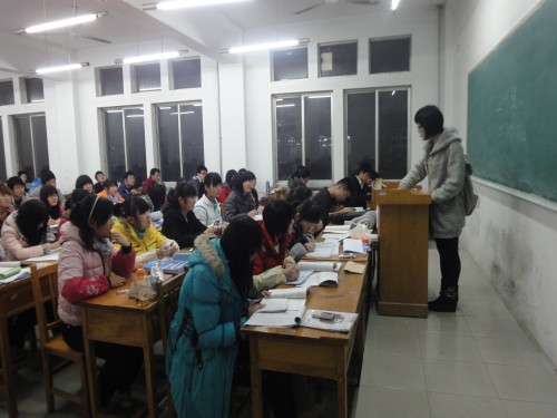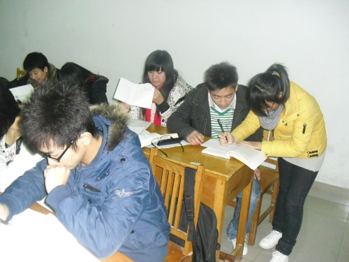 为深入贯彻落实我校创先争优工作,积极响应学院“学生党员承诺践诺”号召,全面推动学院学风建设,12月13日晚,我院第四党支部崔文君等八名学生党员深入工商管理专业班级,结合刚刚结束的期中考试,针对现阶段11级学生学习情况,在三号教学楼102室、103室辅导大一学生晚自习。