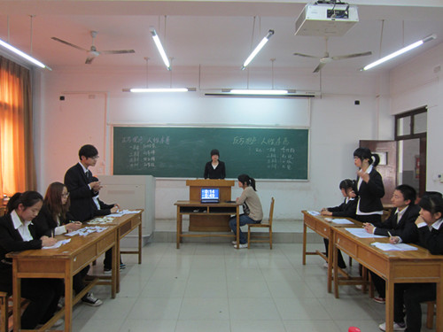 4月22日下午,东校区3号教学楼303教室掌声阵阵,商学院“思齐杯”辩论赛季军争夺战在此举行。持“人性本善”观点的正方代表队和持“人性本恶”观点的反方代表队展开了激烈的争夺。