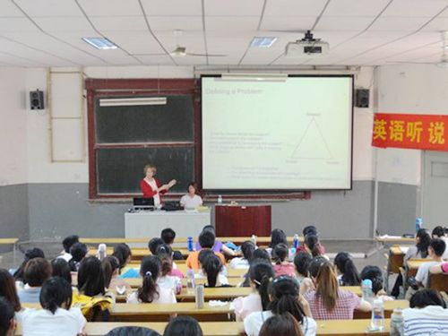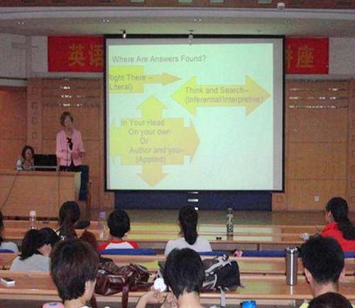 5月10日、11日上午,Faye Crow女士受我院邀请在图书馆一楼报告厅举行了两场英语讲座,随行的有dorothy harrison女士。讲座内容涉及英语词汇框架的构建、听说读写的方法技巧等,现场200多名学生认真听取Crow女士的有趣演讲,气氛非常活跃,会后同学们积极与Crow女士交流,对英语学习有了新的认识。