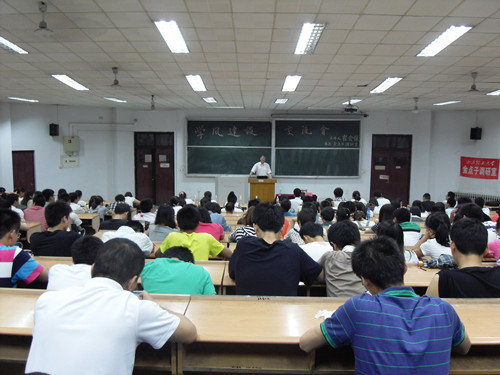 为进一步加强商学院学风建设,由商学院主办,金点子调研室承办的“学风建设交流会”于5月24日下午4:00在东校区3号教学楼210教室举行。此次交流会由商学院副院长崔会保主讲,该院团委副书记王婷,辅导员董梅、张倩等人出席了会议,全院各班级的班长及学习委员参加了此次会议。