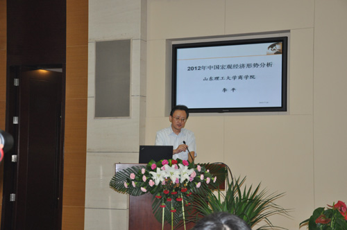 会上,我院院长李平教授被增选为市金融学会副会长并在“金融:服务与责任”高峰论坛上作了《2012年宏观经济形势分析》的演讲,高峰副院长代表学院接受了市金融学会授予的“淄博市金融学会理论研究基地”牌匾。