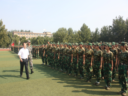 奏国歌结束后,都光珍在军训团团长的陪同下,对我院的军训方阵进行了检阅,同学们以“首长好”、“为人民服务”等嘹亮的口号回应首长的检阅,他们精神饱满、意气风发,显示出我院学子积极良好的精神风貌。