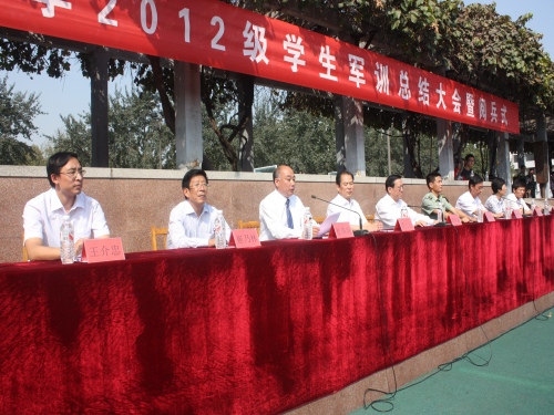 阳光明媚,秋风送爽。9月19日上午,我院2012级学生军训总结大会暨阅兵式在东校区操场举行。学校党委书记都光珍,党委副书记谭秀森,党委常委、副校长杜瑞成,71345部队副政委宋传胜等学校各相关部门领导及我院领导出席了总结大会。