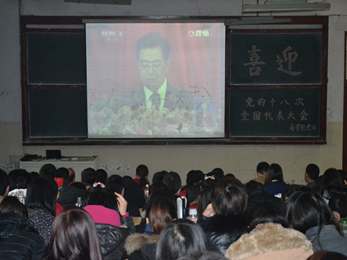 [党学快讯]我院师生集中收看党的十八大开幕式盛况