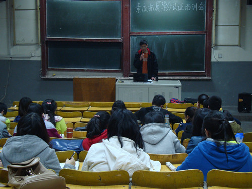 为鼓励学院学生积极参与各类素质拓展活动,提高自身综合素质,4月9日晚,商学院学生会素质拓展中心在一号教学楼东一合堂举行了素质拓展学分认证培训会。此次培训会由素质拓展中心主任吴坤主讲,素拓中心成员及各班级团支部书记参加了此次会议。