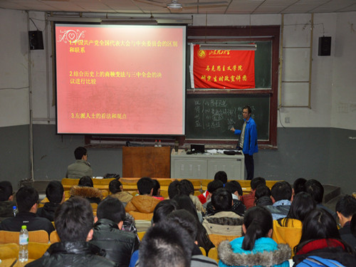 12月9日晚,由马克思主义学院研究生时政宣讲团刘绍艺和李政主讲的“改革是深刻革命——解读党的十八届三中全会”宣讲会暨我院第六次学生骨干培训会,在东校区一号教学楼东一合堂举行,部分学生会骨干成员参加了此次会议。
