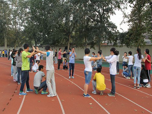 ??? 为帮助新生消除心理陌生感,使其更快更好的适应大学生活,9月21日下午,我院于东校区操场开展了新生团体心理辅导活动。全体大一新生及其带班学长参加了此次活动。