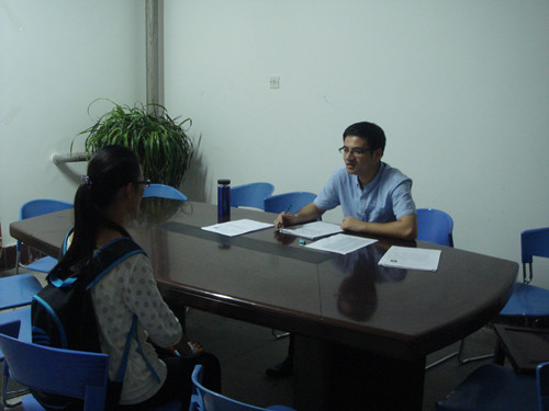 ??????? 面试中,考官首先请同学们逐一做了自我介绍,并详细询问了他们对辅导员助理这一工作的认识、办公软件的熟悉情况、大学任职经历等重点问题。同学们在面试中都沉着应对、坦诚沟通,考官们听后频频点头微笑。考场外也是秩序井然,候考人在外面安静的排队,从另一个侧面充分展现了同学们的良好素质。据悉,终审结果将于本周在学院网站进行公布。