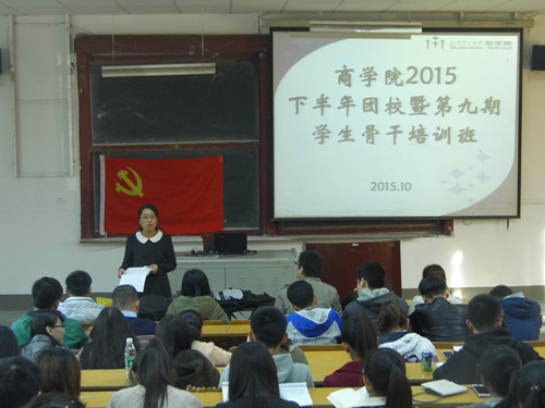 10月29日,我院2015年下半年团校暨第九期学生骨干培训班于一号教学楼西一合堂开班。学院学生会、社团联合会、宿管委、新闻中心等学生组织的骨干人员参加培训。