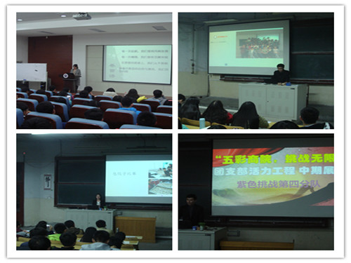 团团相扣结情谊,部部惊心抒风采。11月12日晚,我院“五彩商院挑战无限”团支部活力工程建设中期答辩活动于四号楼报告厅、103教室及104教室分别举行。各颜色团支部分成四个挑战队进行比拼。学生科辅导员及部分学生组织成员担任评委,部分2015级同学观摩了此次活动。