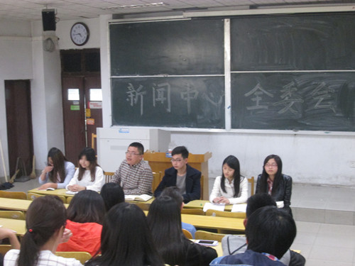 47日下午4点半,新闻中心全委会于我院3教学309教室举行。指导老师赵建辉,新闻中心主任董心桐及新闻中心各部门部长参加此次会议。