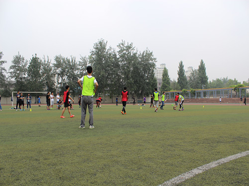 比赛采用淘汰赛制,参赛队伍两两对决,胜者进入下一轮比赛,最终获胜的两队进行决赛。随着主裁判的一声哨响,比赛正式开始。男子组比赛场地上,一次次精彩的传递、拦截引来阵阵喝彩。选手们斗志昂扬,拿出最好的状态,全力争胜。急速地奔跑、快速地反应,让我们看到了他们的认真和专注。精彩地进攻、凶悍地防守向我们展现足球的魅力。另一块场地上,女生们一改往日的文静,在运动中展示出激扬的美丽。虽然没有男子组激烈的对抗,但是比赛过程也同样精彩。在比赛中,不论男生还是女生,都展示出了顽强的拼搏精神。即使在大比分落后的情况下,也同样没有放弃。在终场哨响起之前,自始至终全力以赴。虽然技术水平并不专业,但是精神并不亚于专业选手。