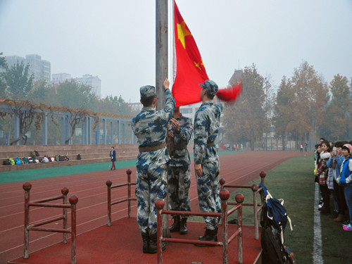 奏国歌、升国旗仪式结束后,王光坊发表主旨讲话,他提到八十年前的光辉历史、革命战士的英勇奋战、两万五千里长征是实现民族独立的最重要的一部分。他提醒广大学生牢记历史使命,珍惜当下生活,弘扬中国精神,共同实现中国梦。他希望广大学子走好自己的长征路,通过我们坚持不懈的努力,为建设中国特色社会主义献出一份力量。最后,院学生会副主席桑军帅进行演讲,他向我们阐述了长征精神的内涵,号召同学们汲取长征精神的力量,努力学习,为身边同学树立榜样。