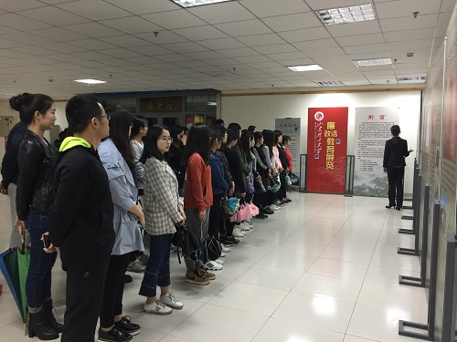 4月16日晚,我院于西校区逸夫图书馆组织入党积极分子参观廉政廉洁教育展览的活动,此次活动由辅导员郭洪涛组织。