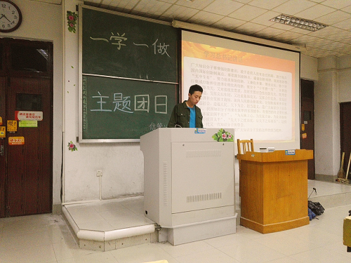 417日,金融1603团支部在三号教学楼309教室开展题为“学习总书记讲话,做合格共青团员”的主题团日活动。团支书带领同学们进行宣誓重温入团誓词。全班共同学习习近平总书记在知识分子、劳动模范、青年代表座谈会上的讲话,在一定程度上加深团员们的理论认识。