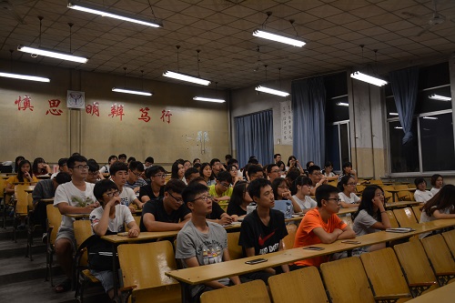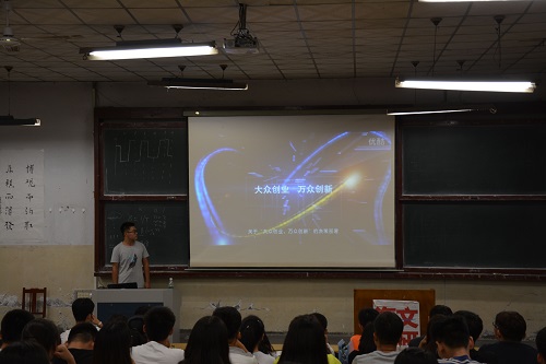 此次活动主要围绕第三届“创青春”大学生创业大赛展开。活动伊始,翟兆钧介绍了大学生参加创新创业大赛概况,他讲到,“创青春”大赛,是在习近平总书记提出的“大众创新,万众创业”的背景下兴起的创业比赛,非常符合当代大学生的需求,并且今后具有蓬勃的发展前景。紧接着,翟兆钧介绍“创青春”大赛主要分为国赛、省赛、校赛三个级别,并详细介绍了校赛的概况及参赛流程,并就参赛要求、项目申报要求、日程安排等细节做出详细的解释,打消同学们的后顾之忧。随后,翟兆钧向同学们展示了往届参赛同学的成果,他结合“创青春”大赛具体成功的案例,鼓励同学们积极参加创新创业比赛,同时,翟兆钧也就参加比赛的意义,与在场同学进行了讨论,他提到,参加比赛可以获得奖学金,可以取得荣誉,但最重要的是收获了参赛的过程,并获得提升自身能力的契机。