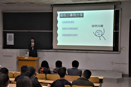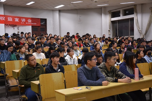 宣讲会伊始,李梦斐阐述了校权益部的宗旨,那就是全心全意为学生服务及维护学生合法权益,真正从学生的角度为学生着想。随后,于丹阳分别从教室、食堂、宿舍、体育场、校医院、浴室、图书馆、校园卡、校园网、人身及个人财产安全十大方面,列举大家经常遇到的相关的权益问题并逐一说明其应对措施,提供了多种维权渠道及其联系电话。紧接着,她展示了我院权益部的QQ号:管小权。管小权是由院权益部成员轮流值班,第一时间回复并帮助解决问题的人工客服,凡事遇到危及到自身利益的问题,大家都可以找管小权反应。此外,管小权也会在空间里发布各种动态,详细分为五个板块:维权我们在路上,维权小贴士,维权新生宝典,管院风采,权权伴你行。最后,于丹阳引用了十九大习近平总书记的发言,“不忘初心,方得始终。中国共产党人的初心和使命,就是为中国人民谋幸福,为中华民族谋复兴。”她总结道:“而我们权益部每位成员的初心,就是为全院同学服务,为同学们的生活谋便利,这个初心和使命是激励权益部不断前进的根本动力。”宣讲结束后进入问答环节,大家对在学校里遇到的权益问题积极提问,由赵博逐一详细解答。此次宣讲会使大家权益问题有了更深的理解,同时更坚定了大家维护自身权益的信念。
