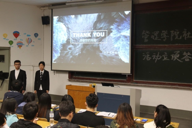 1028日下午,管理学院社团活动立项答辩在一号教学楼东二合堂举行。本次会议由赵凯淇主持,出席本次会议的人员有管理学院各社团会长、社团答辩人员和社团联合会主席团成员以及各部门评审代表。