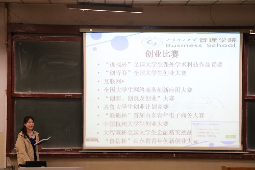 10月29日晚,管理学院于四号教学楼101教室举行“科创类比赛宣讲会”活动,此次宣讲会分为三部分,主要介绍科创类比赛相关内容,具体讲解创业大赛、策划书写法、团队建设等要点。由学院创新创业部副部长于翠萍及包俊杰主讲,17级部分同学参加。