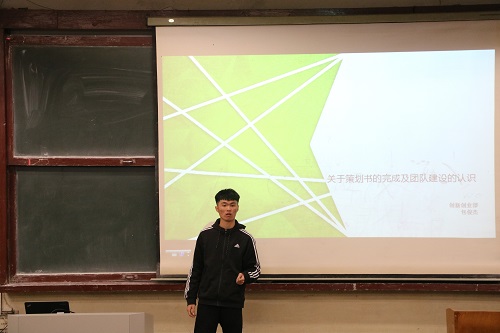 紧接着,包俊杰介绍策划书构成及团队建设相关内容。讲到策划书构思拟定方式,他讲到其大致由项目简介、公司结构介绍等要素构成,之后由优势、劣势、机遇、风险情况来分析项目可行性,策划书要避免冗长、力求简洁清晰。他同时强调此类比赛项目选择重在创新,即取材新颖、点子独特。他建议选择不同专业同学完成一份策划,以实现优势互补。随后,他讲解了团队建设有关内容,认为优秀团队应做到协调统一、目标一致、各尽所能、有效沟通等方面。