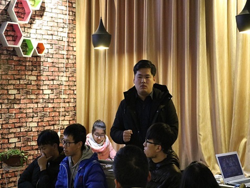 活动伊始,包俊杰就他们团队从得知讯息到全面准备的过程与同学们进行分享。他认为,创意是决定成败的关键,他们得以获奖,好的创意起到了根本性的作用。他讲到,一个团队的成功,需要有明确的分工和团队精神,并多与老师交流,学习借鉴他们的思维方式,可以少走弯路。