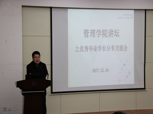 12月16日,管理学院于一号教学楼学术报告厅举行管理学院讲坛之优秀毕业学长分享交流会,此次交流会由2013年优秀毕业生孟源主讲,部分学生代表参加。