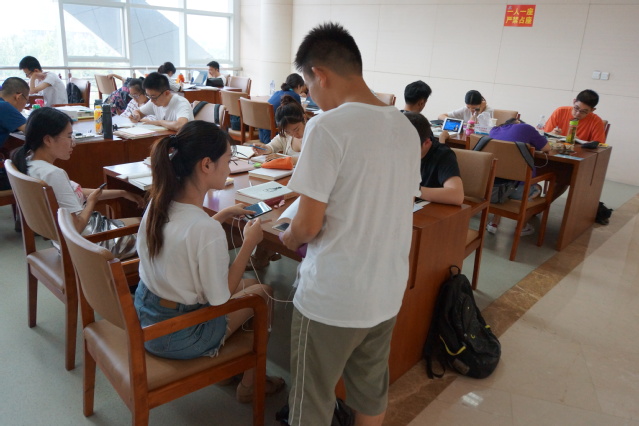 下午,团队成员随机发放了50份提前准备好的“关于网约车使用情况调查问卷”并成功收回42份,来搜集调查对象对于“网约车”问题看法的相关数据。图书馆内大多数人都在读书、学习,在填写完问卷后被调查者会报以团队成员礼貌的微笑。