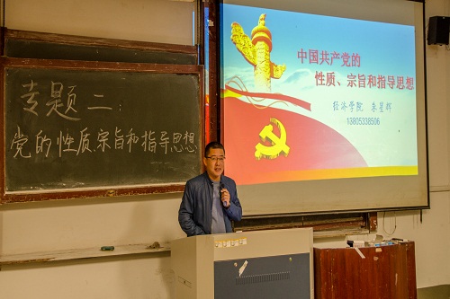 随后,朱星辉讲解到,中国共产党的宗旨是全心全意为人民服务,努力践行党的宗旨是对党员的核心要求。随即,他讲到党的指导思想是与时俱进的,并向同学们介绍了马列主义、毛泽东思想、中国特色社会主义理论体系的形成发展及主要内容。除此之外,他还阐述了习近平的新时代中国特色社会主义思想和治国理政思想框架体系,让同学们明确十九大精神,了解社会主义核心价值观的重要性。