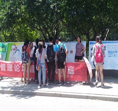 管理论坛“管理一站到底”活动宣传时间为5月30日至6月1日,周三由会员部、宣传部负责宣传,次由策划部、技术部进行,周五由秘书处、外联部负责宣传,新闻部则进行为期三天的新闻采集。宣传地点为东校区餐厅门口。活动报名方式包括微信报名或者线下报名,为参赛者提供多种报名方式。