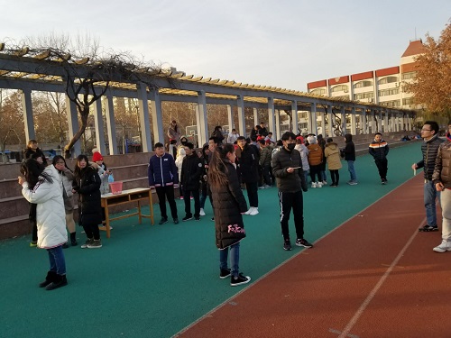 天气的寒冷,抵挡不住参赛人员的热情,体育场上一个个极速奔跑的身影,乐此不疲的积攒资金,为团队贡献力量。紧接着,掘金阶段的活动任务有条不紊的进行,在“夹球飞渡”、“速算跳格”、“歌词记忆大师”等高难度的游戏下,参赛队员各展其能、奋力拼搏,为团队夺取着购买生存必需品的机会。最后,裁判检查各组账单,统计分数,公布最终成绩,为获奖的九支队伍颁发礼品。