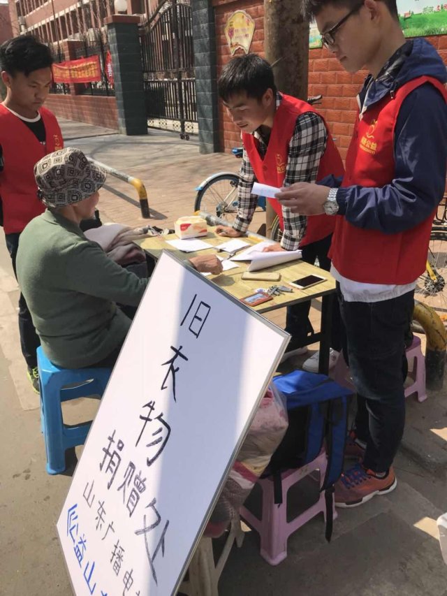 为进一步推广爱心活动,2018年3月24日,金点子调研室的所有成员帮助《公益山东》栏目组于张店区进行宣传和收集旧衣物的活动。