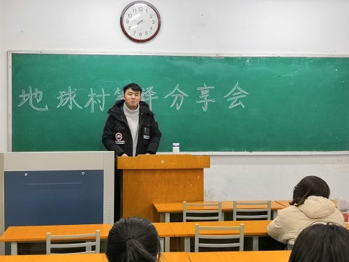 12月13日晚上,管理学院于三号教学楼305教室举行“地球村笔译分享会”活动。此次活动由管理学院省级英语翻译大赛优秀获奖学子付开营主讲,部分学生参加。