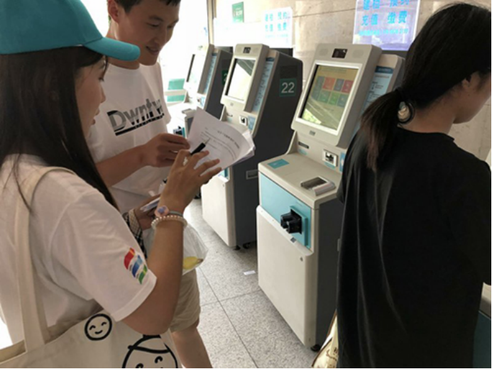 济南市天桥人民医院的调研工作结束后,根据日程安排,团队成员去往济南天桥区如家酒店登记入住。短暂的休息整理后,队员们乘坐公交车到达齐鲁医院。在医院大厅,队员们分组进行问卷发放。同时,在病患流量小的时间,一组队员对主管自助挂号机器使用的护士阿姨进行问卷填写与意见询问。被采访的护士阿姨提到,“互联网+医疗健康”领域,自助挂号系统与网上预约系统发展到现阶段已经比较完善,它们的出现极大的方便了患者,节省患者就诊时间。根据此次调研了解到,自助挂号系统、网上预约系统与人工就诊服务的齐头并进,能够满足不同年龄段的患者需求,减轻医院工作人员负担。与此同时,可以证明,“互联网+医疗健康”的发展态势良好,各方受益,前景广阔。
