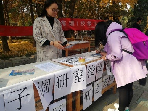5月26日至27日,金点子调研室每日中午于餐厅门口,进行“小小挑战杯”活动宣传,本次活动由金点子调研室会长黄小纯负责,社团各部门分阶段,分时间进行活动宣传。宣传活动期间,拍照任务由新闻部成员负责。
