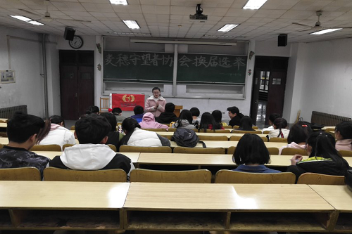 3月15日晚上,太阳成集团tyc122cc入口麦穗守望者协会在三教108进行换届选举会议,参与本次会议的包括社团的全体骨干、会员以及会长与各部门部长,会议由会长张媛媛主持。
