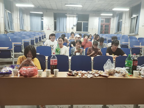 活动开始之前,各位成员已早早来到教室,期待着与各种零食的会面。活动伊始,刘晓艺作中秋贺词,预祝大家中秋节快乐,同时让大家交流对度过中秋节的认知与感悟,通过交流,为喜迎中秋营造了热烈的节日气氛。紧接着,刘晓艺为大家发放零食,收到礼物后,成员们的脸上洋溢着幸福的笑容。随后,大家开始了最激动人心的环节—游戏及才艺表演,同学们开始了你画我猜游戏,输掉的人上台进行才艺表演。同学们丰富多彩的节目给晚会增添了青春的活力,增加了学长们与学弟学妹的交流与沟通,让他们更加近距离地了解麦穗守望者协会。最后,刘晓艺作晚会总结,并感谢大家的到来,同时全体成员合影留念。