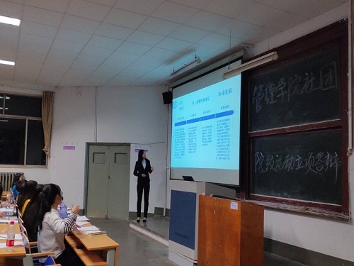 为保证本学期社团活动的质量,9月20日晚,管理学院社团联合会于一号教学楼东一合堂举行社团院级活动立项答辩。此次活动由赵洁主持,管理学院各社团负责人进行PPT展示和答辩,管理学院社团联合会主席团成员、13位社团会长、19位大众评审担任评委依据答辩人的表现以及社团活动的质量进行打分。