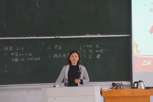 随后,郭奎霞讲解到,中国共产党的宗旨是全心全意为人民服务。每一位申请加入中国共产党的高校学生都应深刻认识和理解党的性质和宗旨,自觉地把践行党的宗旨同自己的学习、工作和言行紧密结合起来,努力为党和人民的事业奋斗终身。此外,她还讲到,党的指导思想是党的灵魂。通过马克思列宁主义、毛泽东思想、邓小平理论、“三个代表”重要思想、科学发展观、习近平新时代中国特色社会主义思想的学习,加强了同学们高举中国共产党伟大旗帜的观念。最后,她要求各入党积极分子提高思想政治水平,积极向党组织靠拢。同时,在实践活动中,不断提升自我觉悟。