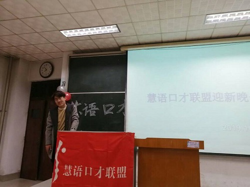 首先由主持人宣布晚会开始,第一个活动是由会长薛白讲话。在本项活动中,会长向新加入的19级新生们讲述了慧语口才联盟的历史和对新成员的鼓励,最后表达了对慧语口才联盟未来的期望,希望慧语口才联盟会在新鲜血液的加入下更加壮大。