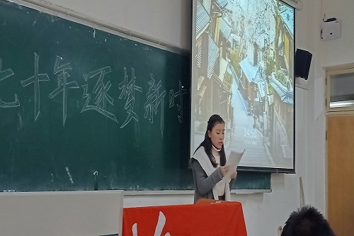 此次活动正值新中国成立七十周年之际,通过举办红色经典诵读,向祖国献礼,带领同学们感受建国七十年来的辉煌成就,铭记英雄楷模、时代楷模为党和人民做出的重要贡献,关注改革和发展的历史,树立当代青年的家国意识,培养大学生的爱国热情,激发大学生的民族自豪感,激励大学生积极向上、乐观进取,使同学们深刻理解并践行社会主义核心价值观,沿着先辈的足迹,勇担时代重任,开拓创新,砥砺前行。(江文超 王雅晶)