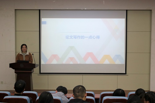 随后,刘福与邢恩凤与同学分享高水平论文写作的心得与感悟。刘福就论文的写作、提交、发表以及被拒后修改相关问题提出对应的策略。他建议同学们多写论文,拓展现有并渐近性创新文献,完成论文后要亲自多次检查,根据拒稿建议反复适当修改。紧接着,邢恩凤对其论述进行补充。她从多个角度提醒同学们摆正心态,多看文献,尽早下笔,在掌握更多科研工具的基础上重视论文修改过程及投稿过程。