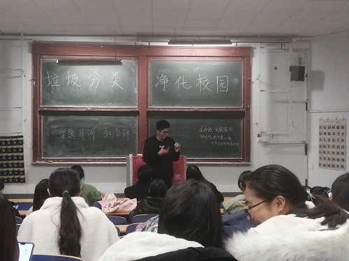 为引导同学们正确的进行垃圾分类,增强环保意识,11月23日下午,文毅家园在东校区一号教学楼西二合堂举办“垃圾分类,净化校园”活动,此次活动由管理学院社团联合会组织监察部部长牛艳晓、祥瑞龙狮协会会长王鹏远、文毅家园会长孙小杭担任评委。