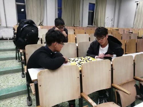 活动开始前,社团成员依次入座。活动伊始,由部分经验丰富的会员对新会员进行指导,其他会员进行实战切磋,随后老会员与新会员两两一组进行实战对弈,新会员之间进行13路吃子对弈。通过实战化的训练,有助于提高社团成员的围棋水平。围棋的组成结构简单,仅由黑白二子和一个十九格的棋盘构成,但其在实际对弈中千变万化,棋手对弈中,错一步可能满盘皆输。此次活动以经验丰富的会员与新会员进行实战对弈的形式举办,对弈过程中经验丰富的会员针对新会员下棋的特点和问题,提出自己的见解和看法,并指导新手该如何进行布局。新手在这种边实战边指导过程中了解更多的围棋知识,提高围棋水平。在对弈过程中,经验丰富的会员学习新的围棋知识,新会员在学习中积累经验提升技能,彼此之间共同提升围棋水平。
