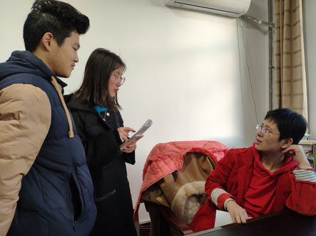 1128午,在东校区四号教学楼204教室,指导老师许敬与麦穗守望者协会成员就看包活动展开讨论,并对看包活动提出建议。