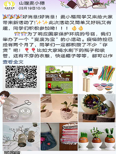 为增进同学们对麦穗守望者协会举行废物巧利用比赛的了解,同时鼓励更多同学积极参加比赛,4月2日至4日,麦穗守望者协会进行此次活动的宣传工作,此次宣传主要是采用线上宣传的方式。
