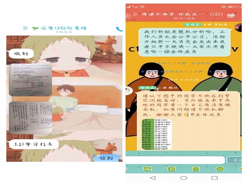 此活动在宣传后受到很多学生的关注,大家在了解该活动之后,纷纷加入活动QQ群,并在报名后填写报名表参加活动。活动伊始,活动组织人员将参赛人员随机分为五十组,每组分别有两位同学,在活动期间需要将自己的学习证明交给工作人员,由工作人员来记录学习完成情况。对于学习的证明有很多形式,既可以是截图也可以是照片,或是简单的小计划、学习笔记等。同学们采取互相监督的方式来督促自己学习,提高自制能力,激起同学们积极向上,热爱学习的心。