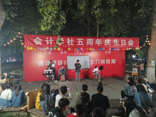 10月11日晚,会计学社于东校区中心花园举办会计学社成立五周年生日会。